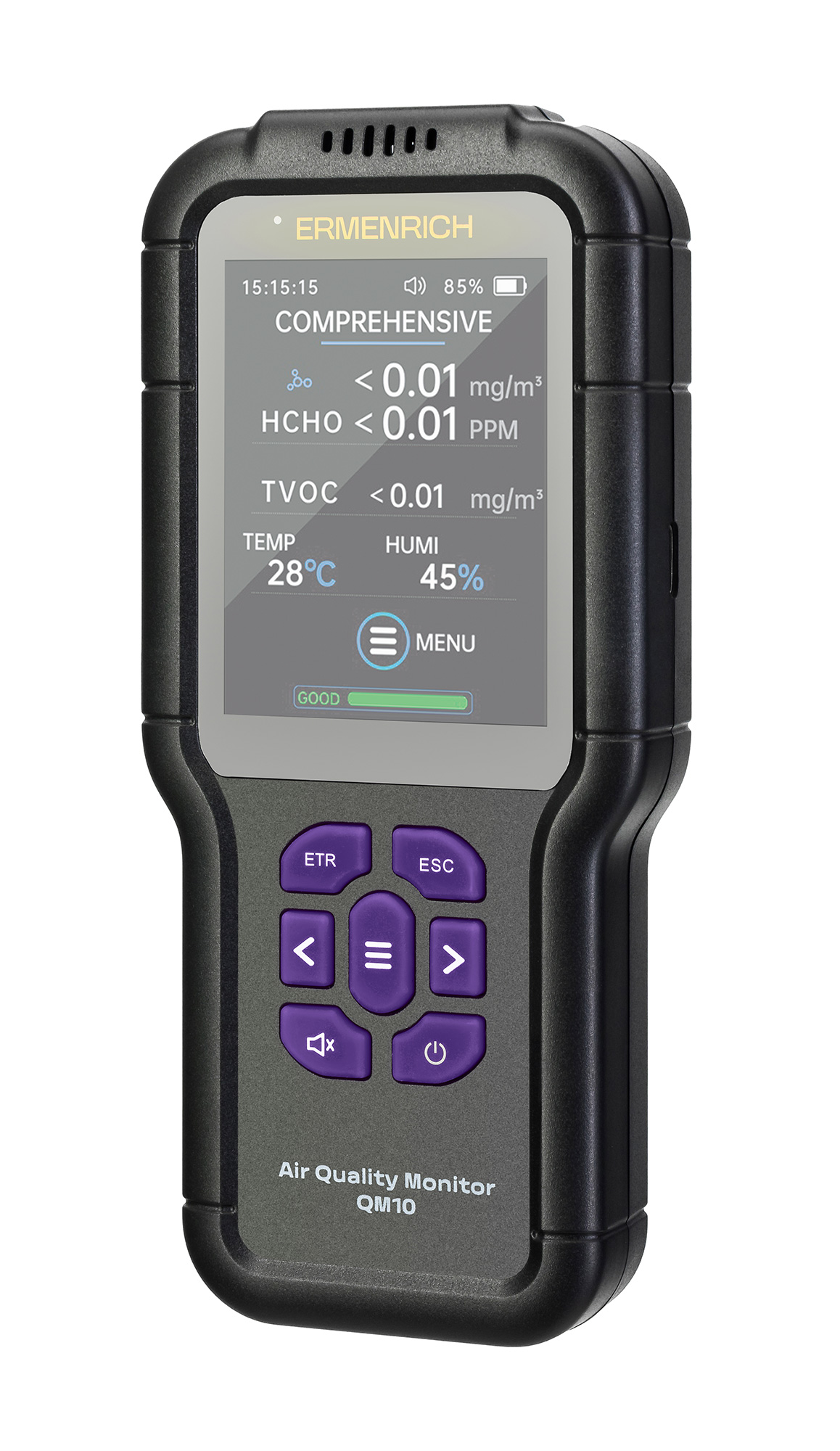 Монитор качества воздуха Ermenrich QM10 предназначен для оперативного анализа воздуха на предмет загрязнения в жилых и коммерческих помещениях – квартирах, офисах, школах, гостиницах, кафе и магазинах. Прибор обнаруживает более 23 видов опасных летучих соединений, включая бензолы, алканы, ароматические углеводороды, олефины, галогенированные углеводороды, сложные эфиры, альдегиды, кетоны и др. Он