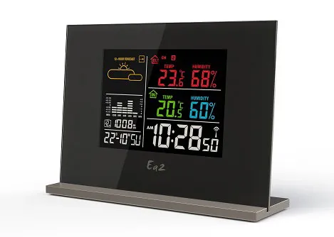 Компактные цифровые часы-будильник с термометром, гигрометром и барометром. Цветной экран