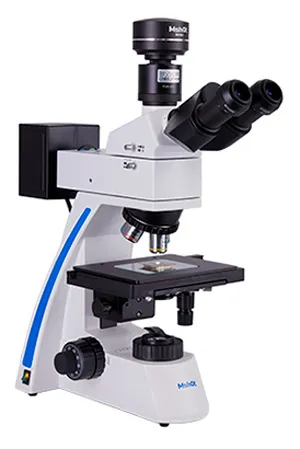 Увеличение: 50–500 крат. Тринокулярная насадка, светодиодная подсветка, проходящий и отраженный свет