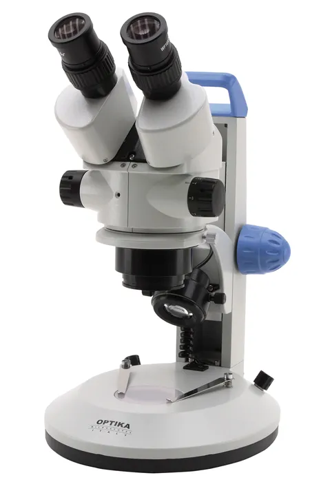 Оптическая системаМикроскоп комплектуется широкоугольными окулярами WF10. Диоптрийная коррекция может производиться на обоих окулярах. Межзрачковое расстояние регулируется от 51 до 75 мм. Зум-объектив дает переменное увеличение в диапазоне от 0,7 до 4,5 крат (коэффициент масштабирования 6,43:1). Увеличение микроскопа меняется в пределах от 7 до 45 крат, при использовании дополнительных окуляров можно добиться большего увеличения.
