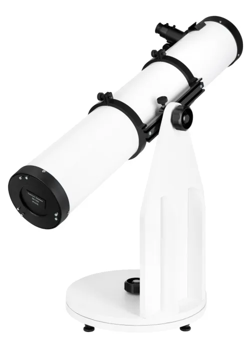 Телескоп управляется вручную при помощи монтировки Добсона. Оптическая труба на нее крепится при помощи колец и пластины «ласточкин хвост». Сборка осуществляется быстро, без сложных операций. Монтировка обладает плавным и надежным ходом – «прицеливаться» в объекты довольно легко. Телескоп можно поворачивать классическим образом: влево, вправо, вниз и вверх.