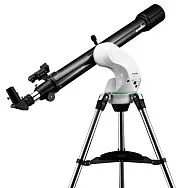 Телескопы Sky-Watcher 709AZ-GO2 SynScan GOTO и Sky-Watcher 809AZ-GO2 SynScan GOTO отличаются только апертурой: у первой модели она равна 70 мм, а у второй – 80 мм; в остальном они одинаковы. Оптическая схема – рефрактор-ахромат. В комплект поставки входят компьютеризованная азимутальная монтировка AZ-GO2 SynScan GOTO, стальная тренога и 5 аксессуаров для наблюдений. Монтировка имеет встроенную систему автонаведения SynScan GOTO с большим программным списком из более чем 42000 наименований небесных тел. Оба телескопа подходят для изучения планет Солнечной системы, рассматривания фаз Венеры, больших кратеров на Луне, колец Сатурна, двойных звезд и других интересных космических явлений.