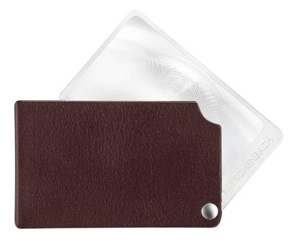 Складная асферическая лупа Eschenbach VisoPocket 2,5x, 74x48 мм в прямоугольном бордовом чехле хорошо подойдет для чтения мелкого текста и изучения карт, схем и фотографий. Линзу можно полностью убрать внутрь чехла. В раскрытом виде чехол служит ручкой лупы. Компактный оптический прибор удобно постоянно носить с собой в кармане пиджака или в сумочке.Длина прямоугольной линзы – 74 мм, ширина – 48 м