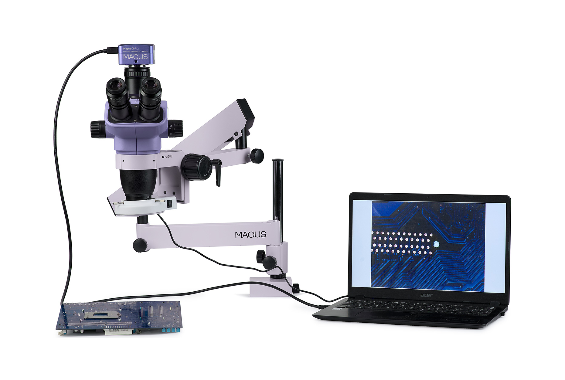 Готовое решение для пайки, ремонта и контроля качества изделий создано на базе оптической головы серии MAGUS Stereo 8H и универсального штатива MAGUS UT2.Камера оснащена интерфейсом HDMI и выводит изображение прямо на экран монитора, без подключения к компьютеру.Стереоскопический микроскоп с оптической схемой Грену сохраняет ясность рельефа поверхности без потери пространственной ориентации и гара