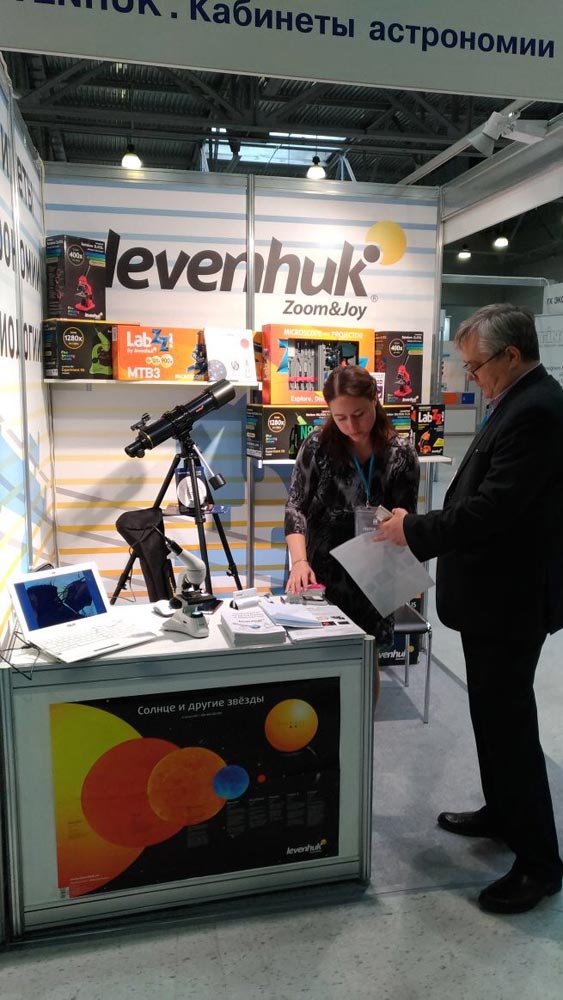 Наша компания успешно проводит уже второй день выставки WorldDidac 2017, посвященной образовательным технологиям и учебному оборудованию. По итогам первого дня стало ясно, что представители учебных заведений со всей России заинтересованы в оснащении кабинетов астрономии и биологии. Посетители на нашем стенде не убывают. Многие интересуются условиями дилерского сотрудничества и консультируются по поводу индивидуального подбора оборудования.