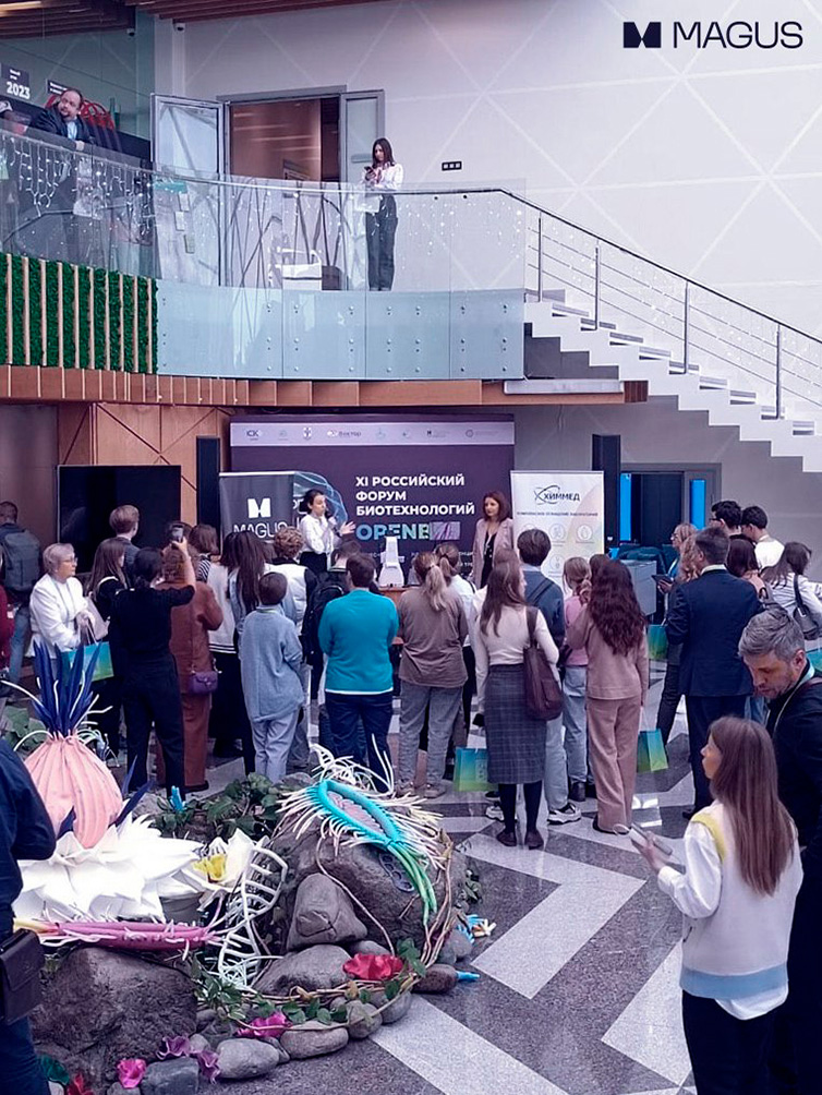 Бренд профессиональных микроскопов MAGUS в содружестве с надежным деловым партнером – компанией «Химмед», принял участие в выставке OpenBio, представив на своем стенде несколько популярных приборов и аксессуаров из ассортимента: микроскопы MAGUS Bio 270T и Bio V360, цифровую камеру CHD50 и монитор MCD40. Оборудование было предназначено для свободного ознакомления и проведения мастер-класса по изучению стволовых клеток человека, выращенных на базе кафедры Института Цитологии и Генетики, и биопрепаратов на предметных стеклах. Стенд MAGUS привлек много внимания со стороны посетителей события: желающие выстраивались в очередь и с нетерпением ждали возможности лично познакомиться с нашими приборами.