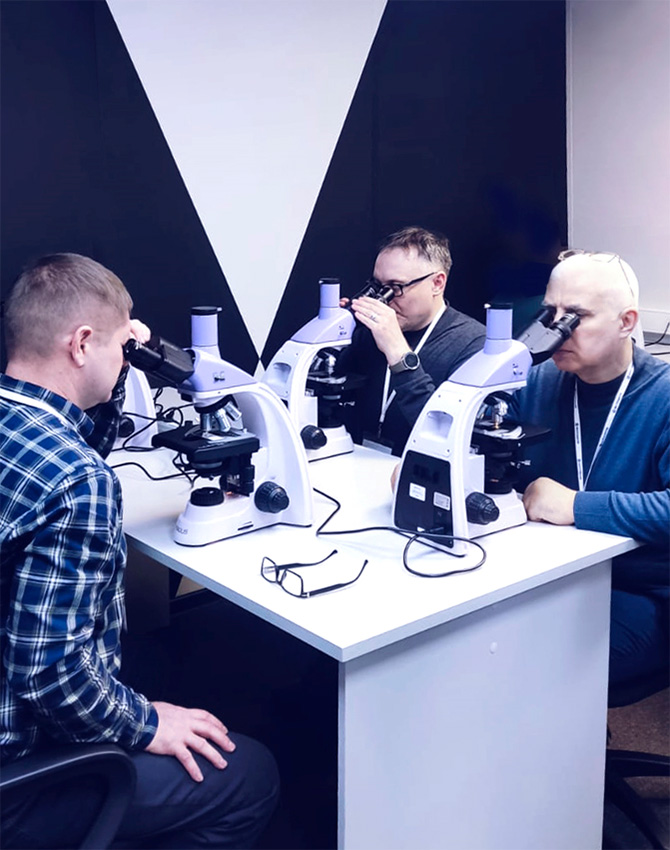 Для максимальной эффективности обучения мы используем авторские методические материалы, а также проводим обучение на микроскопах в нашем выставочном зале.